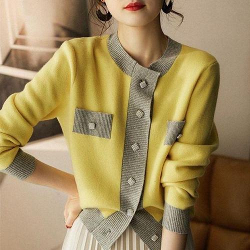여자 여성스러운 FW 옐로우 비즈 SS 울 가디건_3