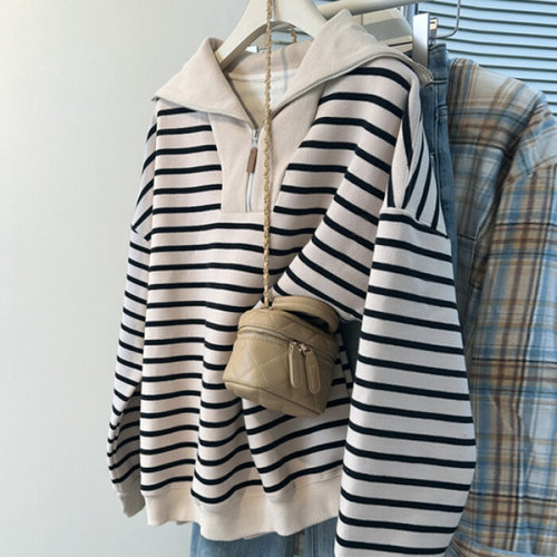 나바바 / NT2250 여성 캐주얼 단가라 긴팔 카라 맨투맨