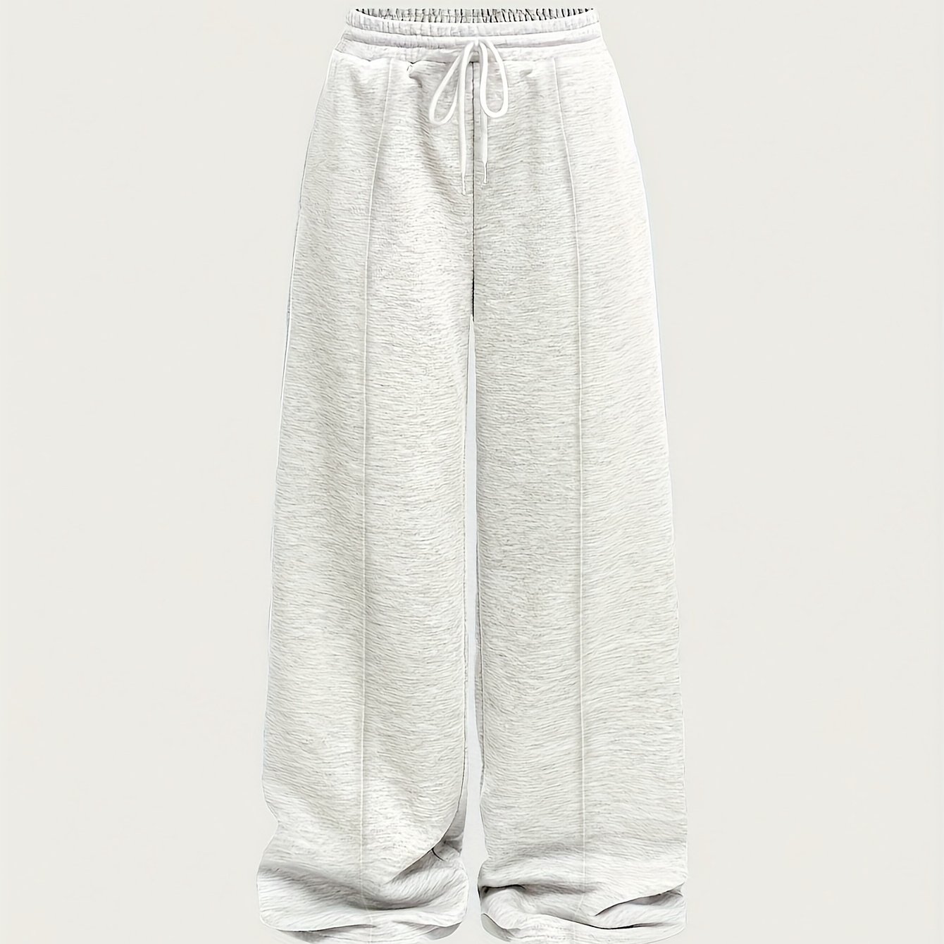 TEMU 여성 캐주얼 와이드 레그 팬츠 (탄성 드로스트링 허리) - 가을/겨울용 포근한 기모 안감 바지, 단색, 사계절 편안함, 캐주얼 복장