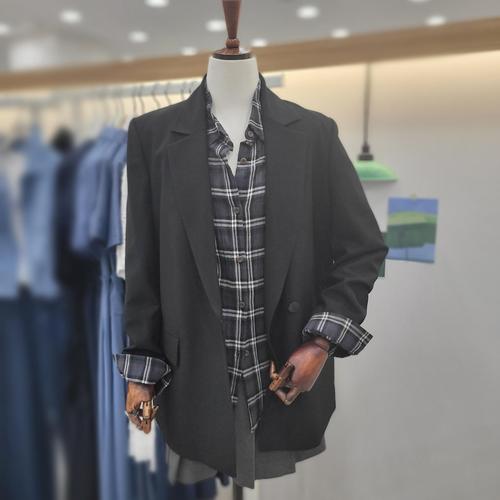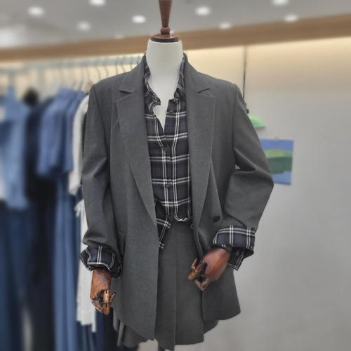 [비지트인뉴욕]반더블 원버튼 테일러드 체크 자켓 VB9JK9A