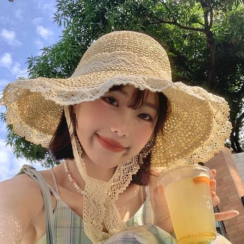 [에이치플러스몰]버킷햇 밀짚 레이스 썸머 여름 비치모자 라피아햇