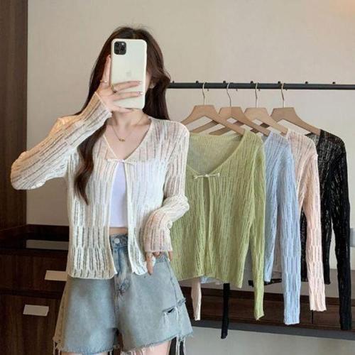 [셀러허브_여성트랜드패션]ONM 여성 여리한 시스루 가디건 긴팔 1P 단추 비치