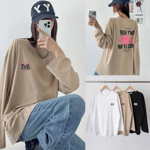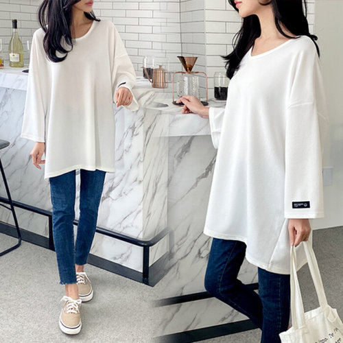 [567스타일]여성 긴팔티 간절기 얇은 티셔츠 맨투맨 빅사이즈 면라운드 레이어드 박스티쭉티 가을 페이즈