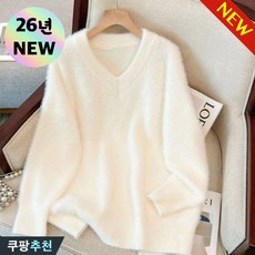 (완전 편한) 75kg까지 빅사이즈 여성 브이넥 흰색 밍크 스웨터 니트 가을 겨울 편한 앙고라 부드러운 여성스러운 패션 코디 디자인 데일리 심플 캐주얼 박스니트 날씬해보이는 니트티