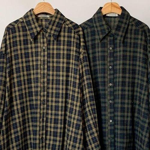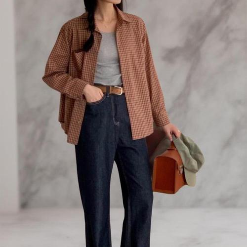 체크 하트자수 카라 면 셔츠 긴팔 루즈핏 여성 빅사이즈