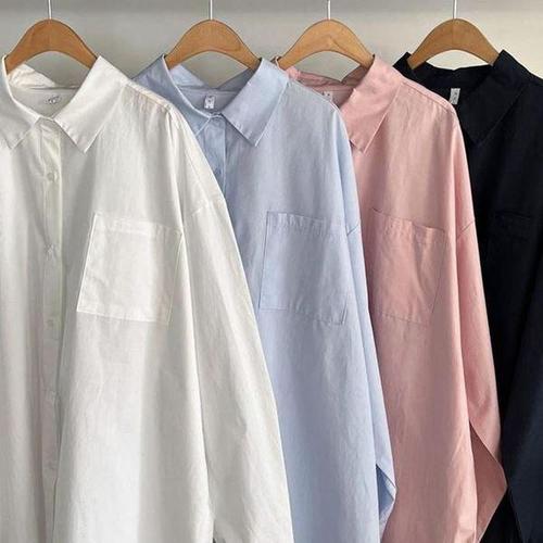 [다잇템]여성 일상용 롱슬리브 면혼합 빅사이즈 셔츠