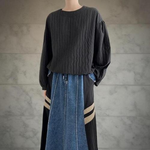 [문에이블]문에이블 여자 여성 가을 봄 데일리룩 편한 빅사이즈 캉캉 긴팔 셔츠 롱 원피스