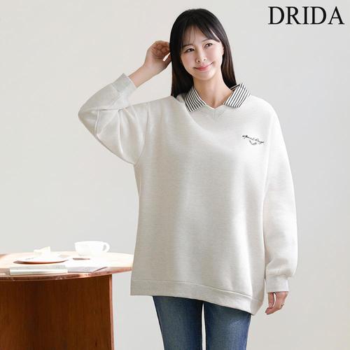스트라이프 카라 빅사이즈 기모 맨투맨 미시 엄마옷 캐주얼