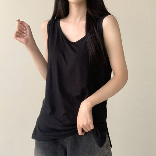 빅사이즈 여성의류 레이어드 20수 이너 롱 나시 민소매 옆트임 티셔츠 오버핏 루즈 봄 여름 사계절 66-110 size