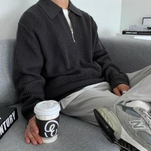 [셀러허브_여성트랜드패션]남성 하프집업 베이직 카라 빅사이즈 니트웨어