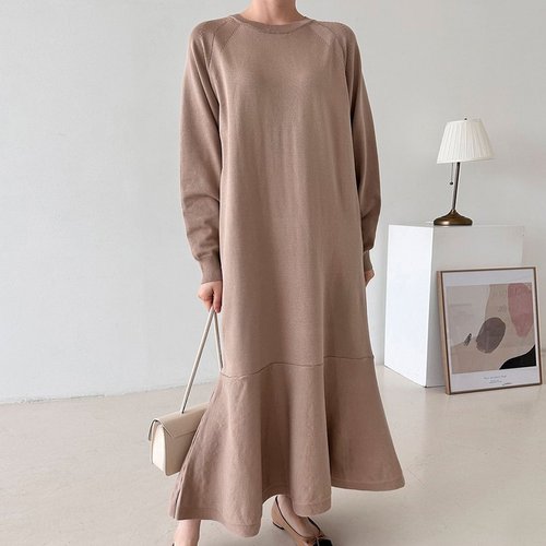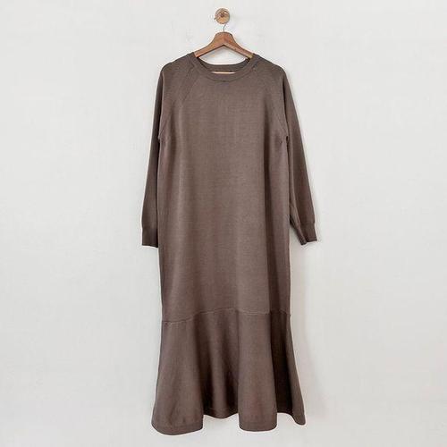 [샵앤]여성 라운드 머메이드 루즈핏 빅사이즈 니트 훌 원피스 ARA-WDR-3028-모카