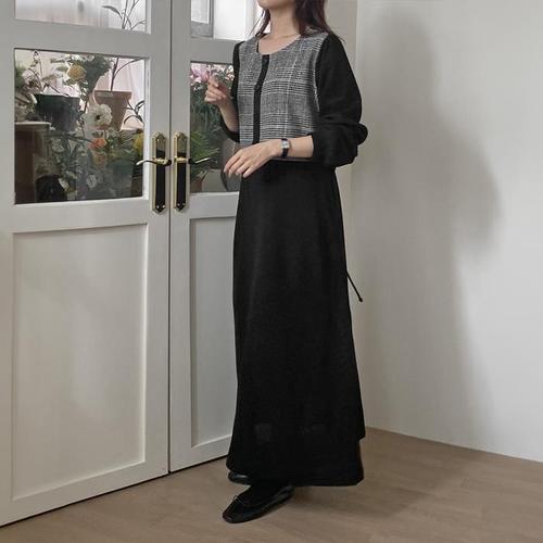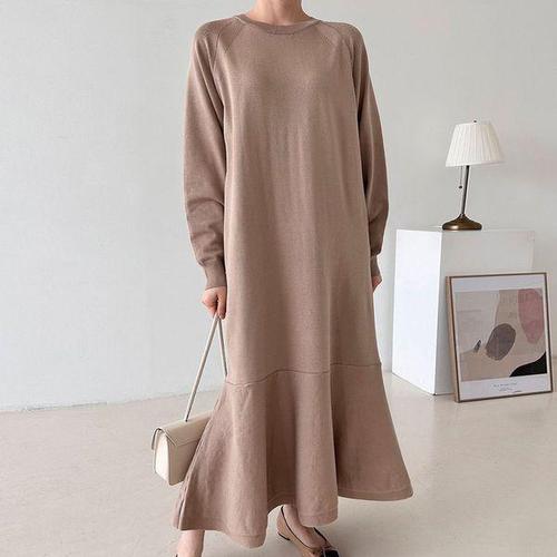 루어스룸 플레인 루즈핏 라운드넥 하객룩 임부복 긴팔 빅사이즈 니트 롱 원피스