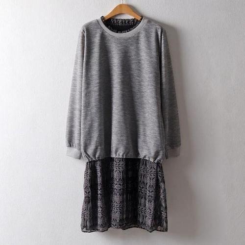 [셀러허브_여성트랜드패션]빅사이즈 311 투패턴니트플레어원피스 DGOQ233