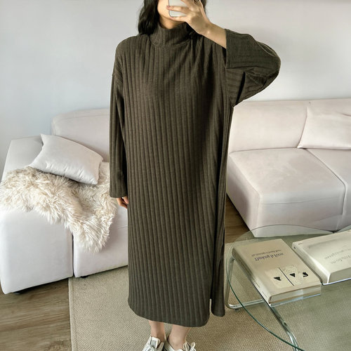 [유니제이] 렌디 터틀넥 니트 언발 롱 원피스/빅사이즈/기모/겨울원피스/빅사이즈
