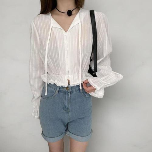 [에이치플러스몰]롱셔츠 프릴블라우스 캐쥬얼 레이스 빅사이즈 신상