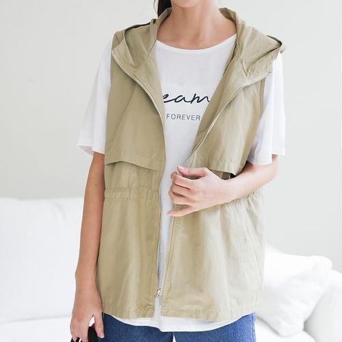[드리다]여성 봄 가을 빅사이즈 바스락 후드 경량 베스트 조끼 40-50대 미시 중년여성 엄마옷 캐주얼 출..