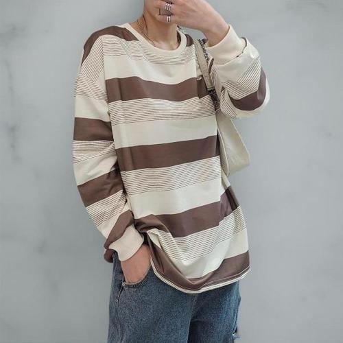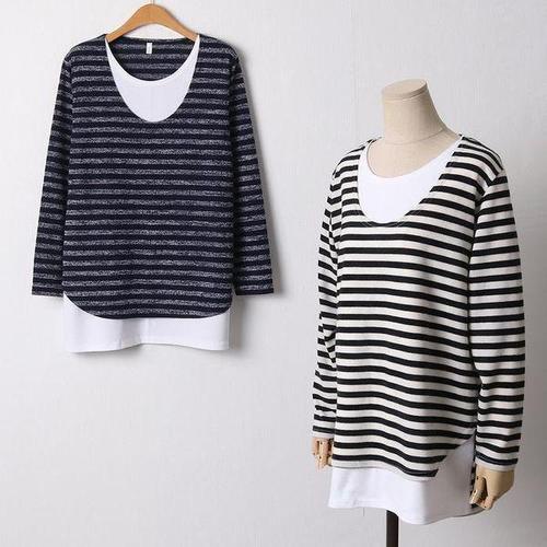[셀러허브_여성트랜드패션]빅사이즈 510 이중배색줄지롱티셔츠 DMNF543