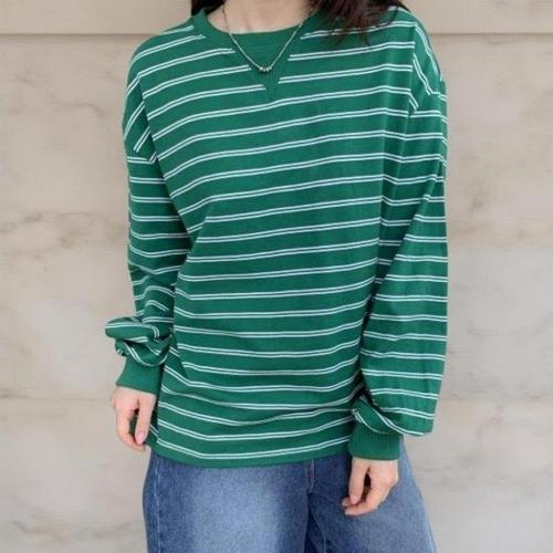 [다잇템][다잇템] 여성 빅사이즈 트라이앵글 롱슬리브 단가라 면100 티셔츠_22869107_588872