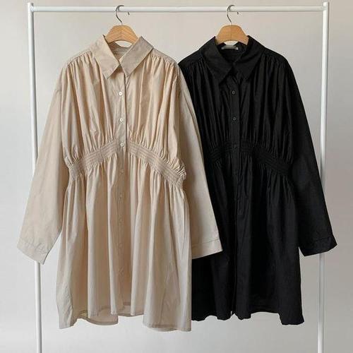 [신상오픈런]빅사이즈 하객룩 셔츠롱원피스 주머니 면원피스