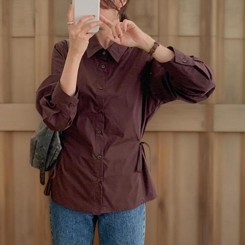 [미라클세븐]여성 가을 출근용 빅사이즈 리본 코튼 긴팔 셔츠