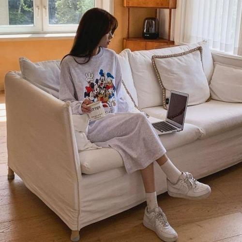 [다잇템][다잇템] 여자 빅사이즈 롱 슬릿 캐릭터 클래식 면혼방 원피스_23517436_588872
