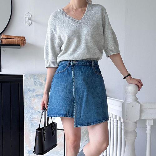 [옷자락] [시즌오프]언발 컷팅 청치마바지 A라인 빅사이즈 미니스커트_5