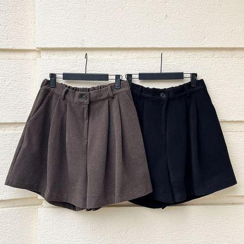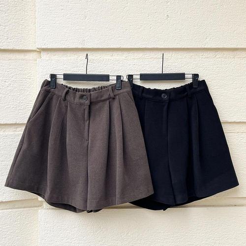 [신상오픈런]여성 겨울용 스판 기모 반바지 빅사이즈 투핀턱 반바지