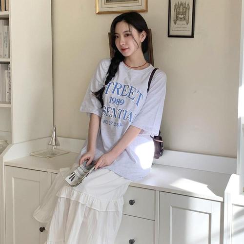 오스틱니 110kg까지 빅사이즈 1+1 특가상품 날씬해보이는 심플 프린트 영문티 미디티 bf 시원한 반팔 티 여름 여성 편한 무지 루즈핏 얇은 박스티 캐주얼 티셔츠세