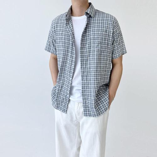 체크셔츠 남자 남방 남자셔츠 빅사이즈 반팔셔츠 (WFHR9NG)