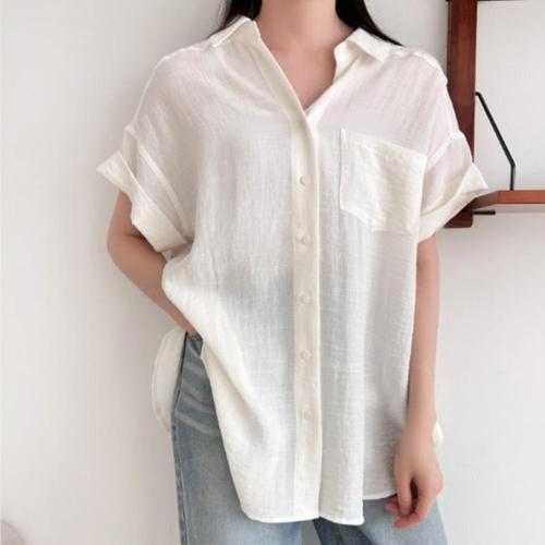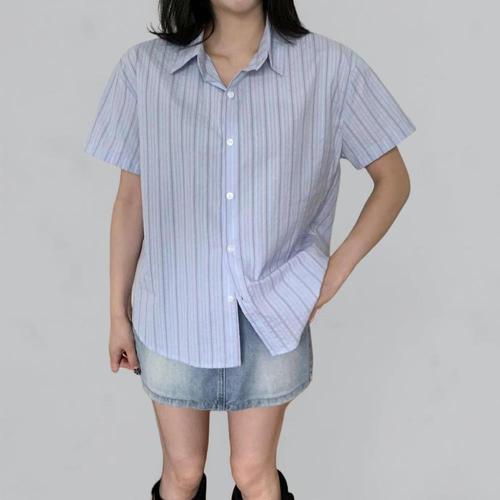 여성 미니멀리즘 단가라 반소매 빅사이즈 남방