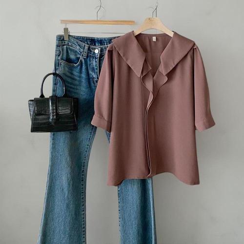 여성 반소매 베이직 시폰 빅사이즈 프릴 셔츠