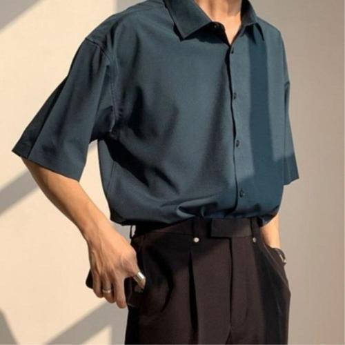 남성 빅사이즈 남방 단추 반소매 베이직 칼라