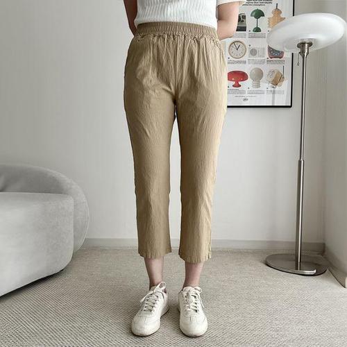 [셀러허브_여성트랜드패션]제니유 여름 린넨 여성 항아리 스판 배기팬츠 빅사이즈 통바지