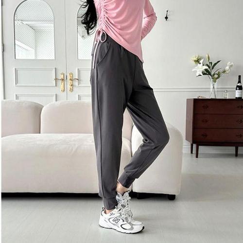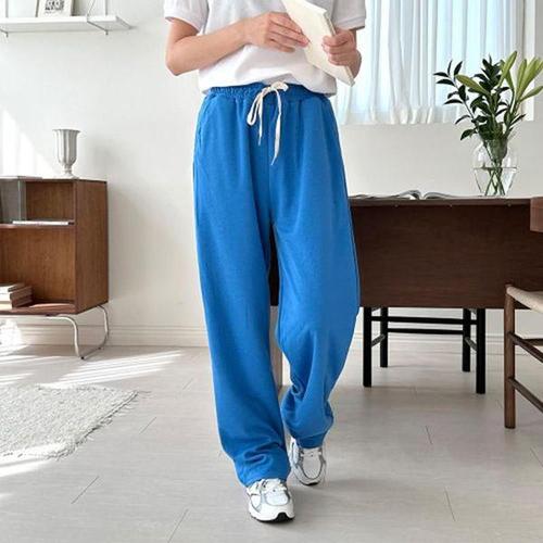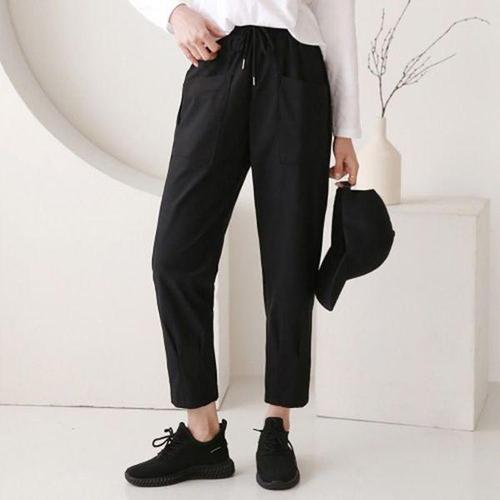 신상 순면 빅사이즈 순색 캐주얼 배기 팬츠 여성 봄여름 9부 나른한 이완감 와이드핏 수수한 트레이닝 바지