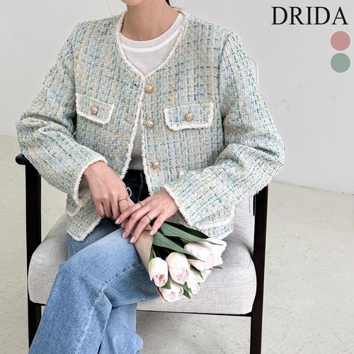 [드리다]드리다 여성 봄 노카라 빅사이즈 트위드 자켓 미시 캐주얼 오피스룩 하객 모임