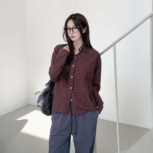 [다잇템]여성 잔잔 남방 빅사이즈 롱슬리브 격자 남방