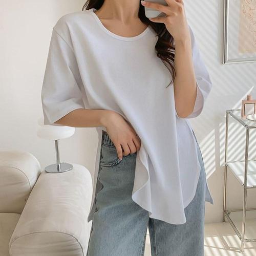 |KST8C90|박스반팔티 옆트임 라운드넥 바인딩 무지면 빅사이즈