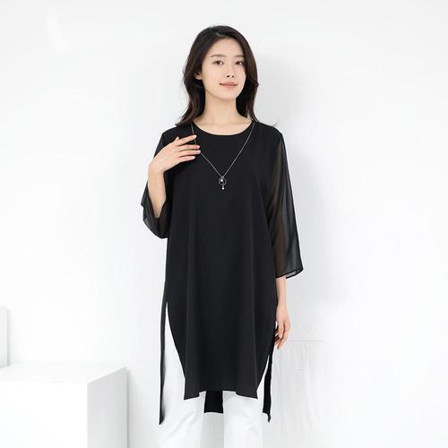 엄마옷 라운드 목걸이 쉬폰 롱 블라우스 614BNM354 중년여성/50대/60대/마담/빅사이즈/할머니옷