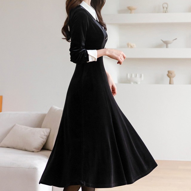 [에이치플러스몰]DS숄더원피스 2컬러 쉬폰 패션 여자옷 가을 하객 니트 쉬폰 빅사이즈 롱 정장 여성 블라..
