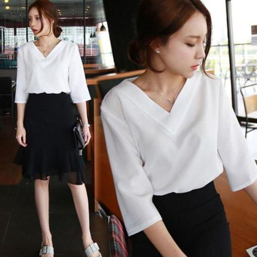 [에이치플러스몰]데이트 정장블라우스 셔츠 가을 여성셔츠 빅사이즈