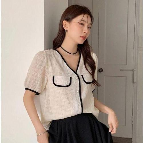 드리다 여성 봄 여름 빅카라 진주 프릴 빅사이즈 7부 블라우스 하객 오피스룩 학부모 모임 미시