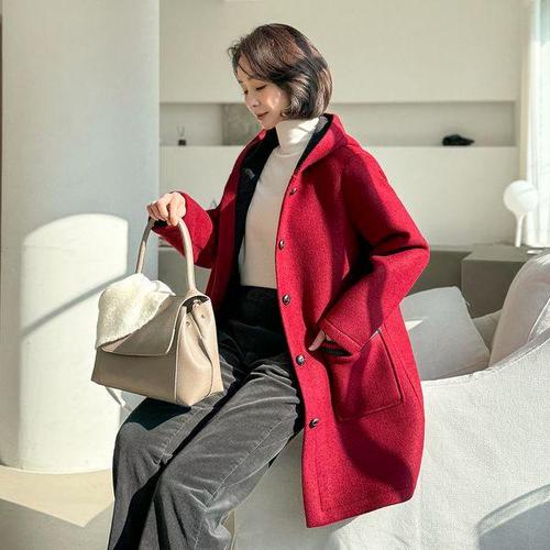 ANYOU 겨울 여성 울 코트 빅사이즈 루즈핏 보온 코트 정장 코트