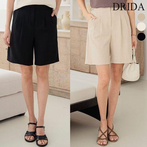[드리다]여름 여자 린넨 반바지 와이드 일자 핀턱 5부 빅사이즈 팬츠 40-50대 중년여성 엄마옷 미시 출근