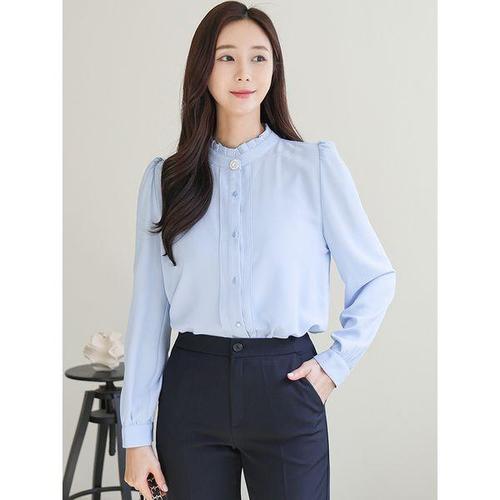 [드리다]여성 봄 가을 장식 프릴 빅사이즈 쉬폰 오픈 긴팔 블라우스 하객 상견례 모임 오피스룩
