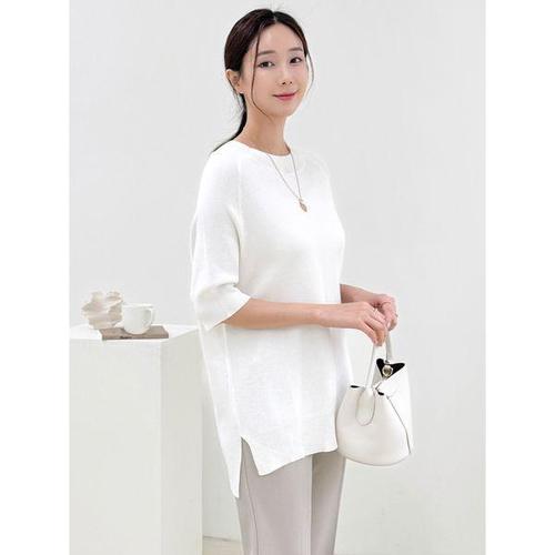[드리다]여성 여름 린넨 라운드 5부 빅사이즈 롱 니트 40-50대 미시 중년여성 엄마옷 하객 모임 오피스룩