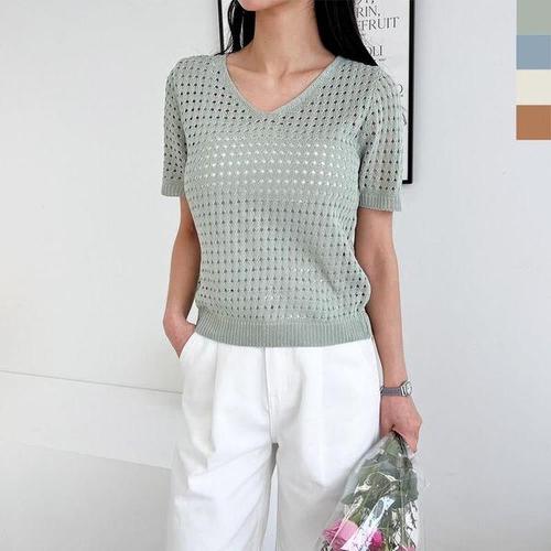 베이직 반팔 카라 티셔츠 여성 반팔티 케이블 꽈베기 여름니트 빅사이즈