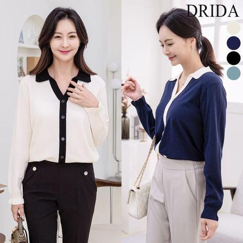 [드리다]봄 가을 간절기 여자 캐시미어 카라 빅사이즈 니트 40-50대 중년여성 엄마옷 출근룩 오피스룩 모..