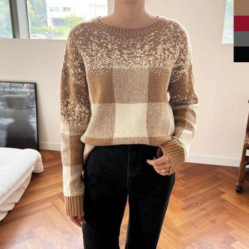 [에이치플러스몰]여자니트티 카라넥 빅사이즈라운드넥 겨울 코디 니트