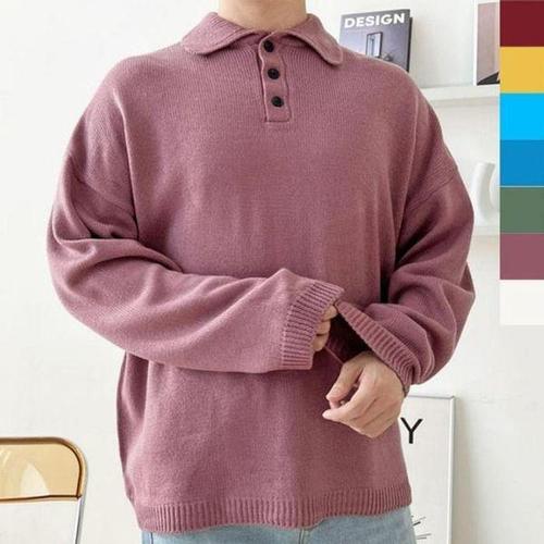 [셀러허브_여성트랜드패션]1P 단추 간절기 남성 긴팔 빅사이즈 카라 니트 남자