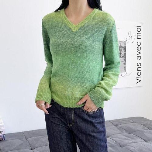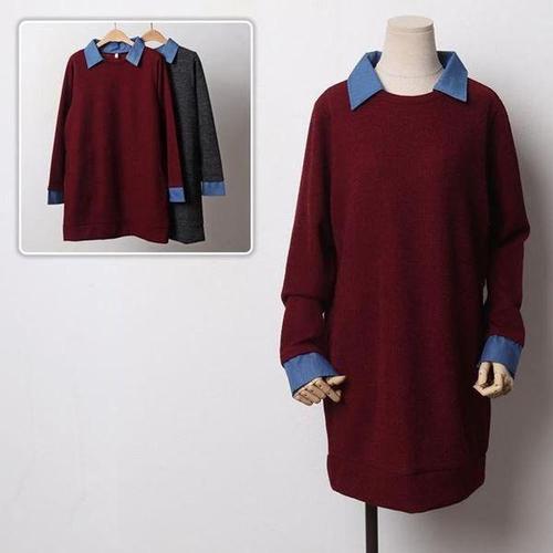 [다잇템]여성 배색카라 롱슬리브 빅사이즈 니트